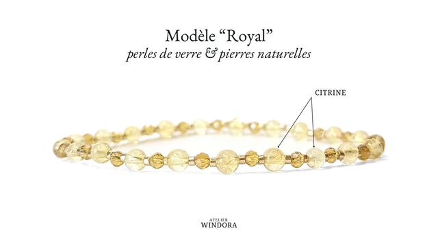 Modèle "Royal" : Citrine (4mm) et perles en verre (3mm et 2mm).