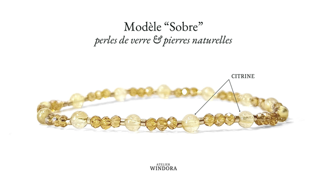 Modèle "Sobre" : Citrine (4mm) et perles en verre (3mm et 2mm).
