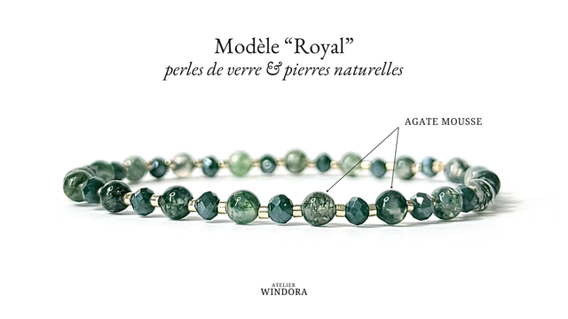 Modèle "Royal" : Agate Mousse (4mm) et perles en verre (4mm et 2mm).